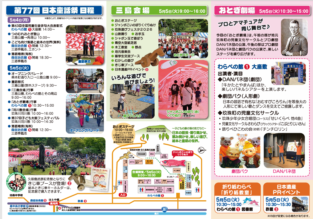 大分県玖珠町で毎年開催される一大イベント「第77回 日本童話祭」が今年も開催されます。