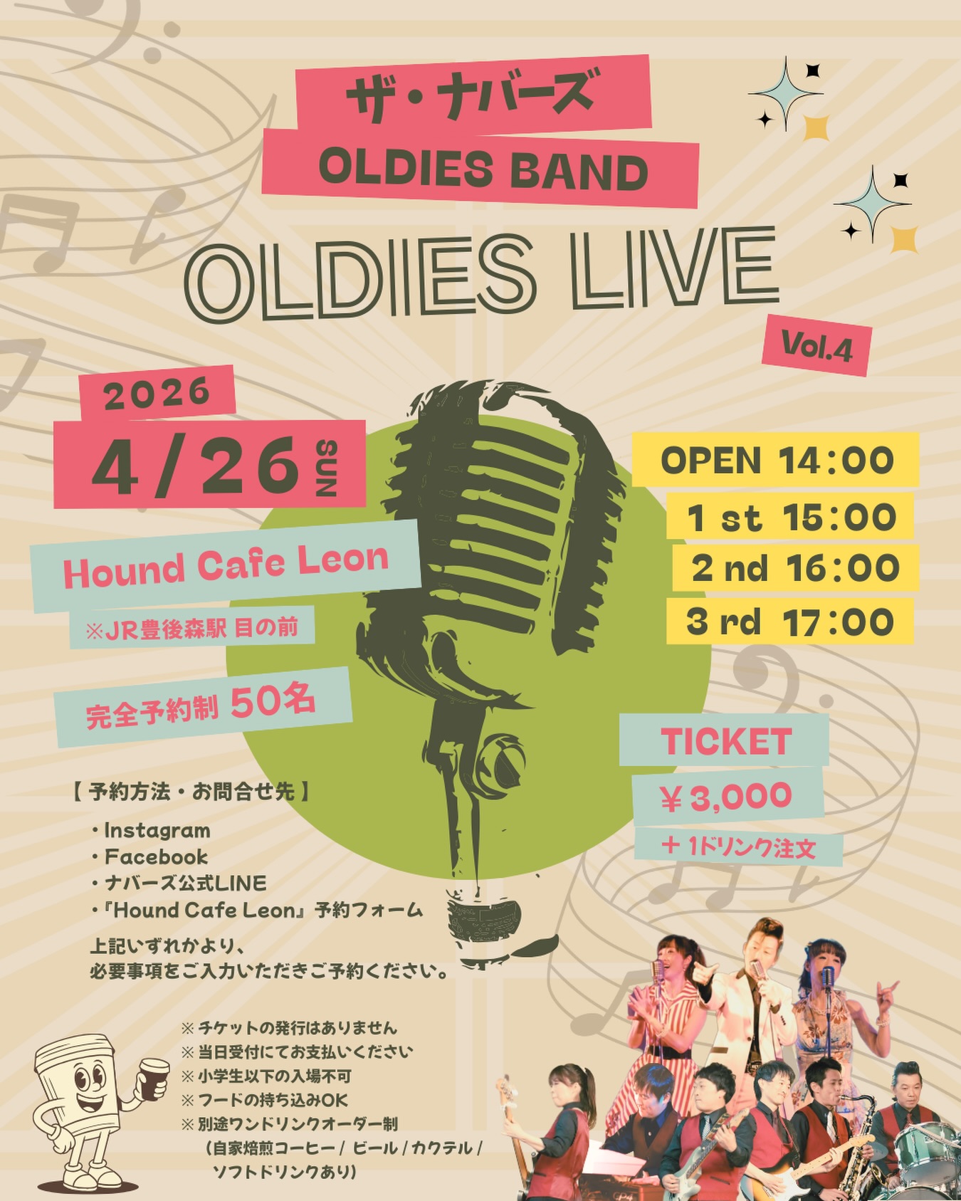 2026年3月28日(土)に、玖珠を拠点に活動するオールデーズバンド「ザ・ナバーズ」のライブが開催決定。